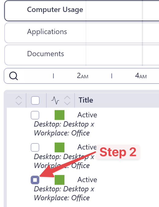 You can even check boxes across different timelines - for example, one on the Computer usage timeline and another on the Applications timeline. To switch between timelines while selection is active use buttons on the left side of timelines.