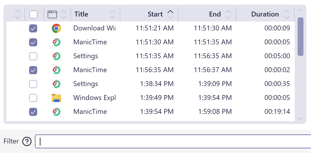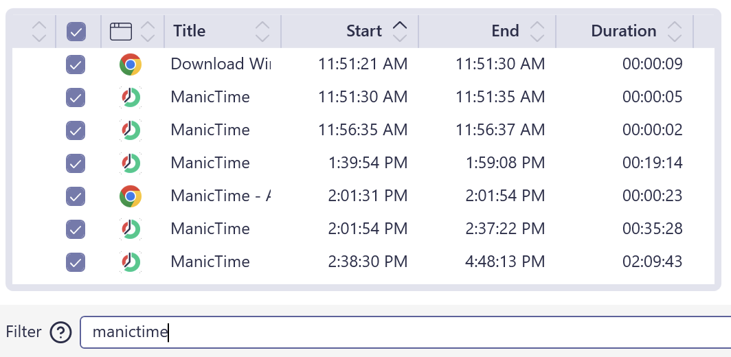 ManicTime offers a lot of flexibility when it comes to selecting and organizing your time. Whether you’re dragging on the timeline, filtering activities, or combining multiple selections, the system is designed to make tracking your work both fast and intuitive.