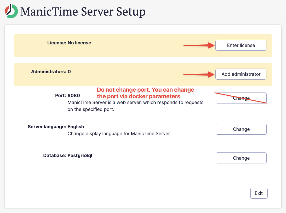 Or simply change the port when starting the ManicTime Server container (see Use a different port section above).