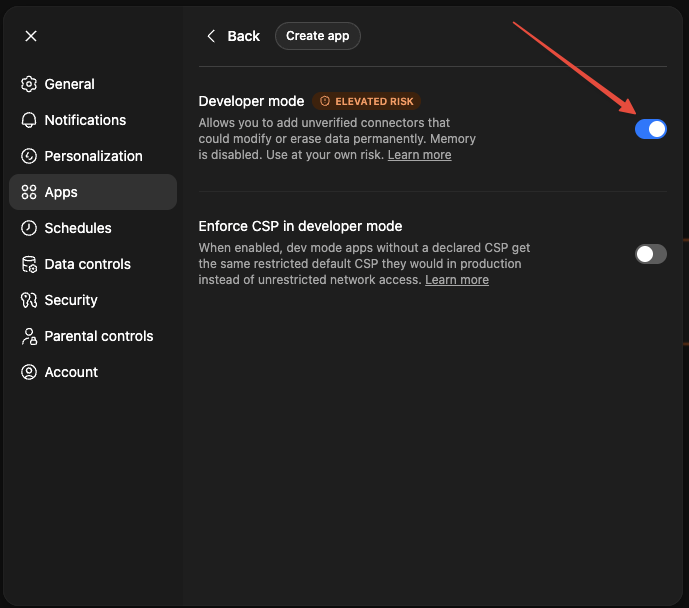 Settings → Apps → Create app